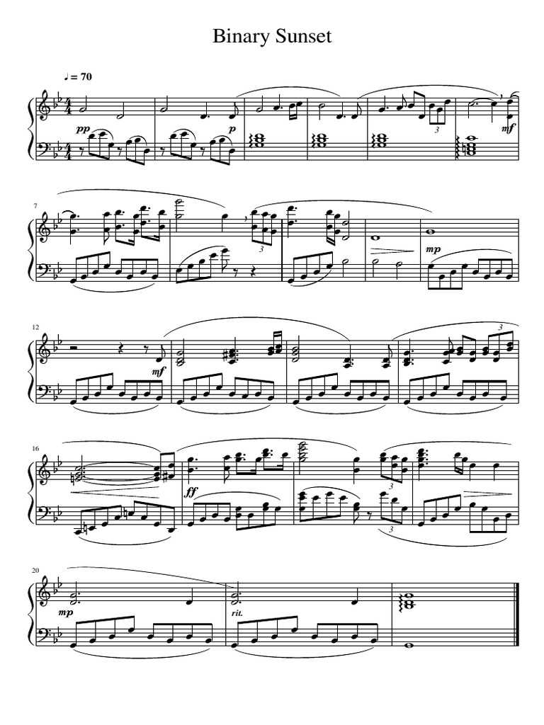 Web browse our 2 arrangements of binary sunset. sheet music is available for piano with 1 scoring and 1 notation in 2 genres.