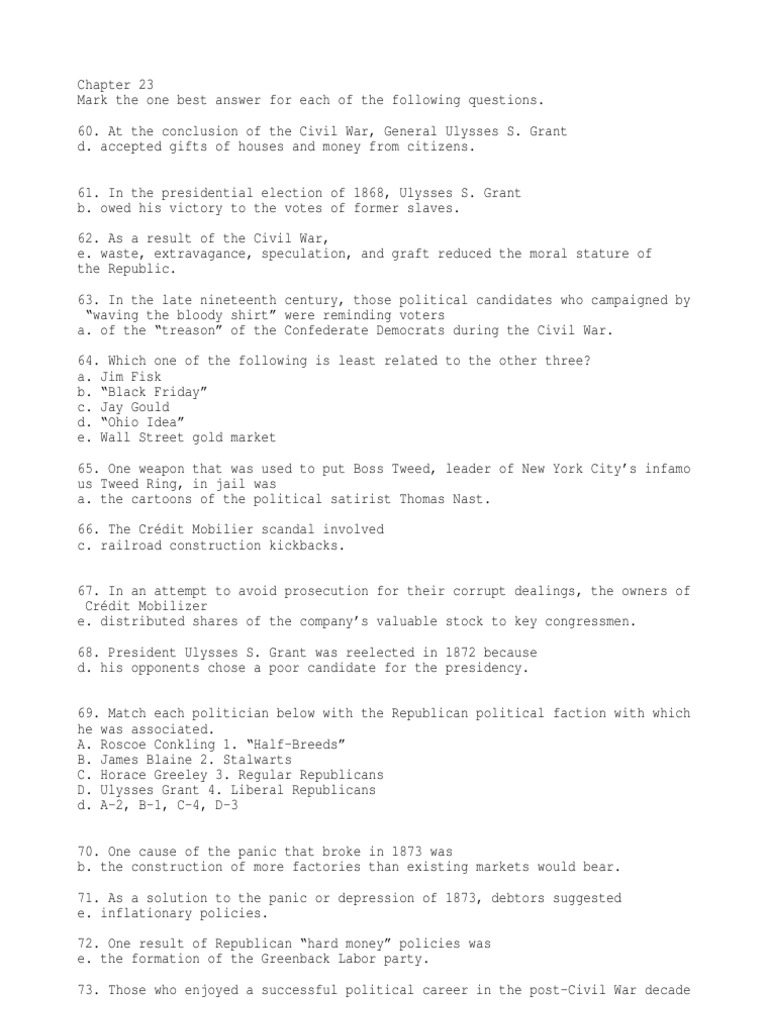 Chapter 24 apush multiple choice 50 terms. The republicans nominated general grant for the presidency in 1868. Web apush chapter 23 term 1 / 16 despite his status a military hero, general ulysses s. At the conclusion of the civil war, general ulysses s. Web definition 1 / 48 they were eventually released, president johnson had pardoned them.but congress had.