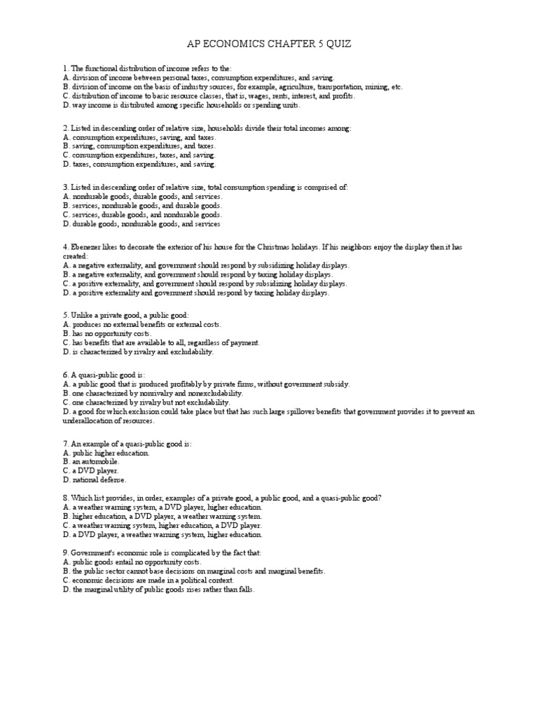 AP Economics Chapter 5 Quiz PDF Externality Subsidy