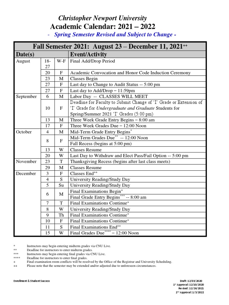 Cnu 2021 2022 Academic Calendar PDF Academic Term Educational