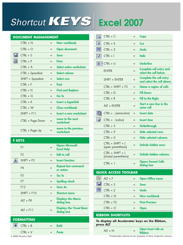 Microsoft Excel Shortcuts Cheat Sheet StudyPK