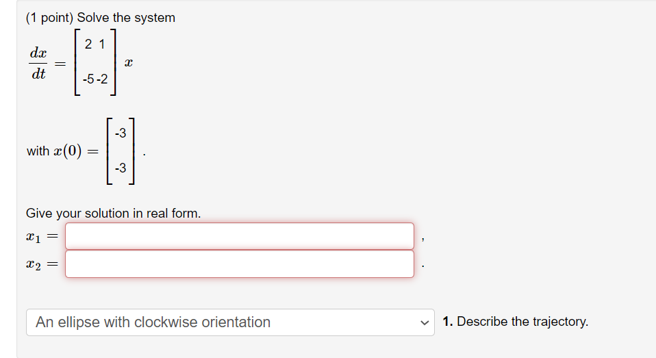 Solved Solve the system dxdt= ⎡⎣⎢⎢ 2 1 ⎤⎦⎥⎥ 5 2 x with