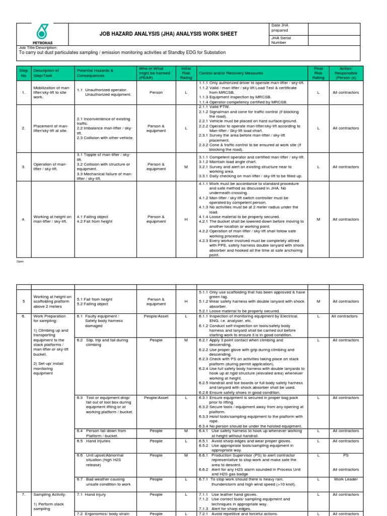 Download our free job site. Web job hazard analysis (jha) form purpose: Web job hazard analysis, simply put, is a method to identify existing and/or potential hazards of a job. Meet & exceed your ehs goals. Web this template, available in pdf, word, and excel formats, helps you identify possible hazards and implement appropriate safety measures.