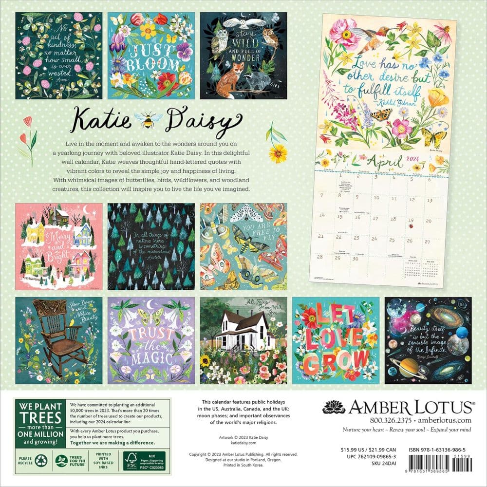 Katie Daisy 2024 Wall Calendar Let Love Grow Amber Lotus Publishing