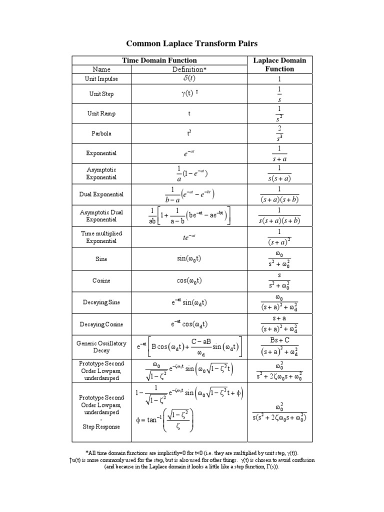 Common Laplace Transform Pairs PDF