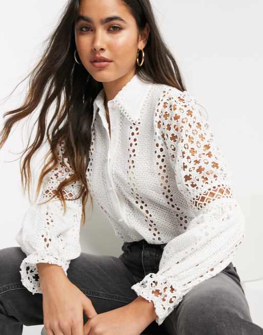Camisa de manga larga con bordado inglés en blanco de River Island ASOS
