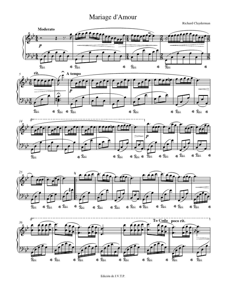Mariage D'Amour" Sheet Music by Richard Clayderman for Piano Solo