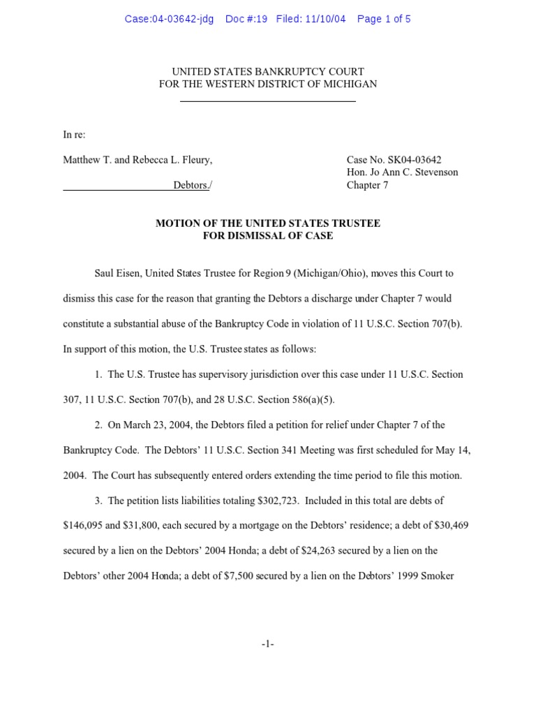 Motion To DismissFleury Chapter 7 Bankruptcy PDF Chapter 7