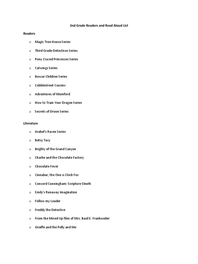 2nd Grade Readers and Read Aloud List