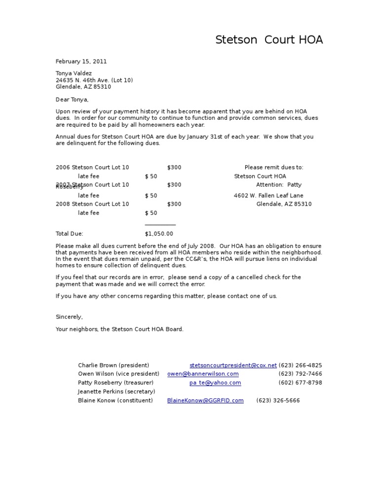 Sample Hoa Letters Dues