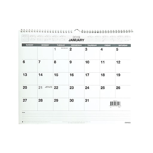 2019 Staples® Monthly Wall Calendar, 12 Months, January Start, 15" x 12