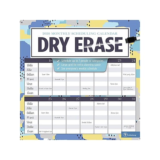 2020 TF Publishing 12" x 12" Dry Erase Calendar, Big Grid, Multicolor
